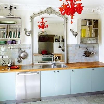 Did it ever occur to you? Well, not to me! And I really don´t know why but I have never thought of having a mirror in the kitchen, and after seeing these pictures I think is an excellent idea which I will try sometime.