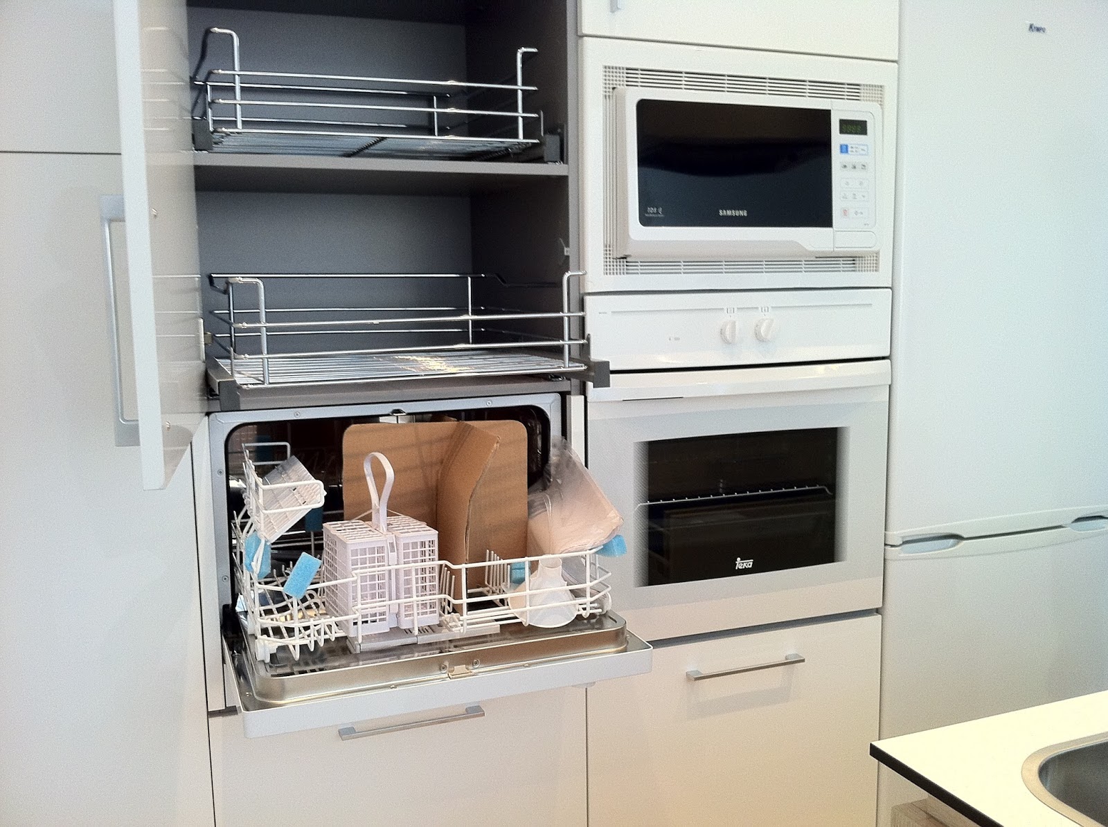 Eso que veis lleno de papeles es el lavavajillas que se ha puesto a la altura de la encimera.