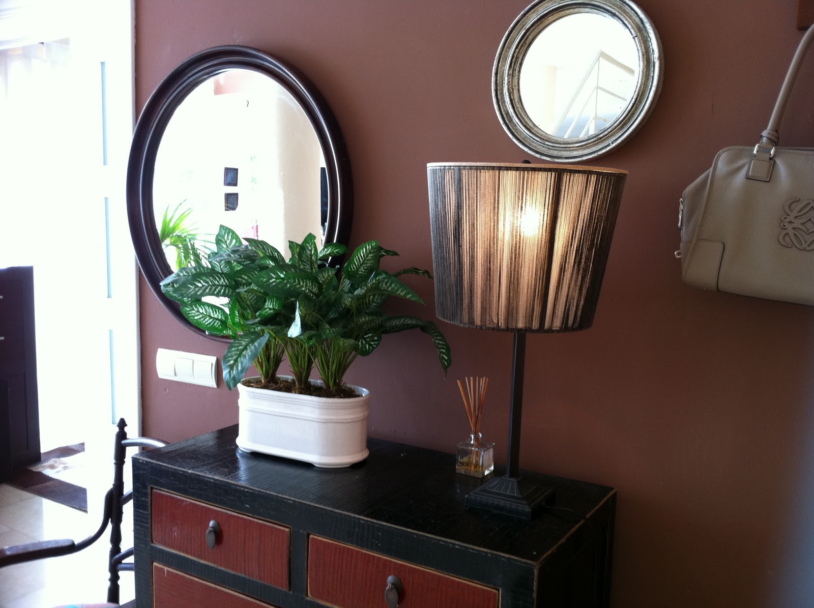 Para el espejo, por ahora sólo le he encontrado una ubicación. Me tendrá que llegar la inspiración del acabado. Aún tiene su color madera original, y mientras lo vaya viendo en su nuevo sitio, creo que decidiré. También tengo que cambiar el tapizado de la silla y seguramente su color, pero aún no lo tengo claro. ¡Se aceptan sugerencias!
