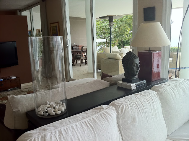 A mí, particularmente, me encantan los muebles altos y estrechos detrás de los sofás que me dan la posibilidad de tener una lámpara a la altura del respaldo y hacer el ambiente más acogedor, además de proporcionar una luz perfecta para leer (prefiero la luz indirecta a la de techo en los salones, siempre) En sofás que muestran su espalda, aún más indicado, porque siempre será más bonito un mueble que la trasera de un sillón.